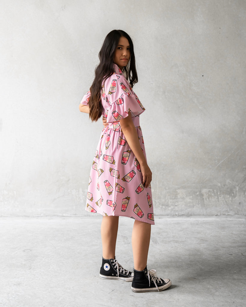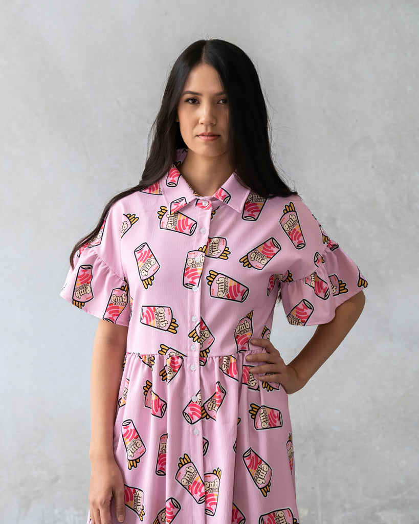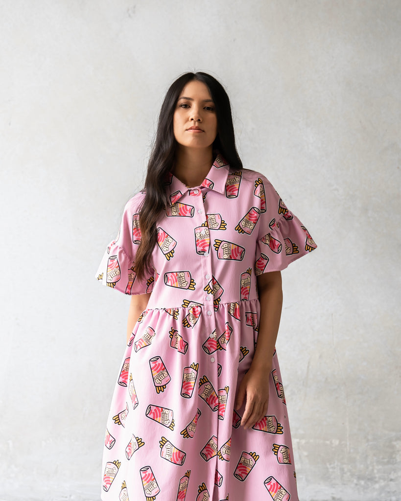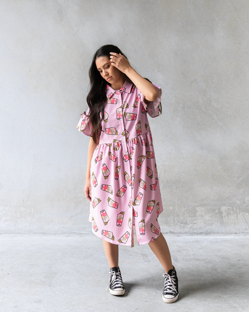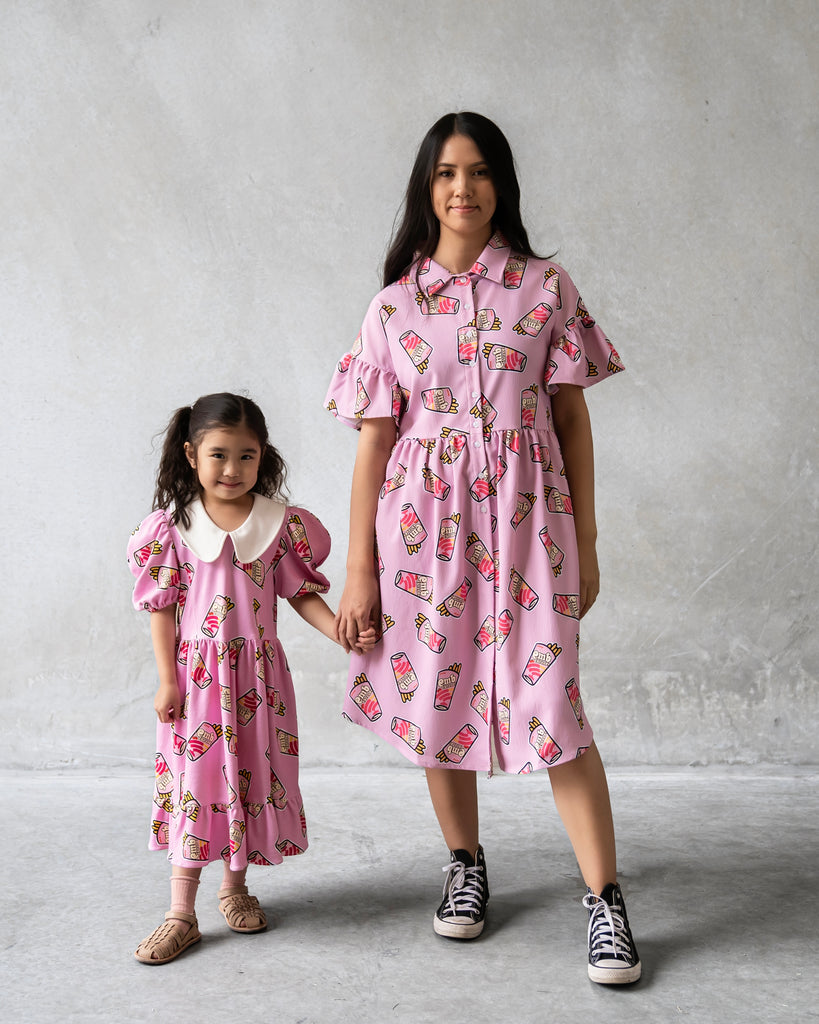 Introducing 'EMB Threads', our first ever matching Mini & Me collection. Look outrageous in this endorphin-evoking dress. Featuring a fun strawberry biscuit sticks print inspired by a favourite childhood snack, this ensemble is perfect for those who don't take themselves too seriously. Stand out in style with this unique dress and show your snack-lovin' side!