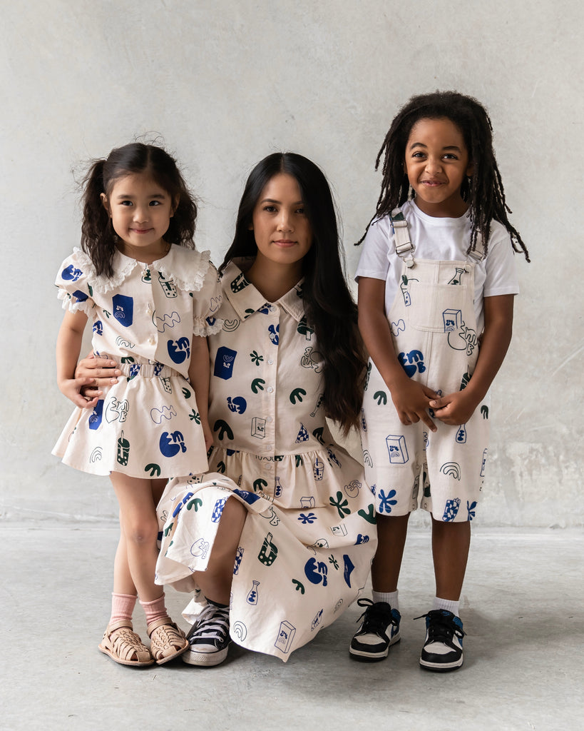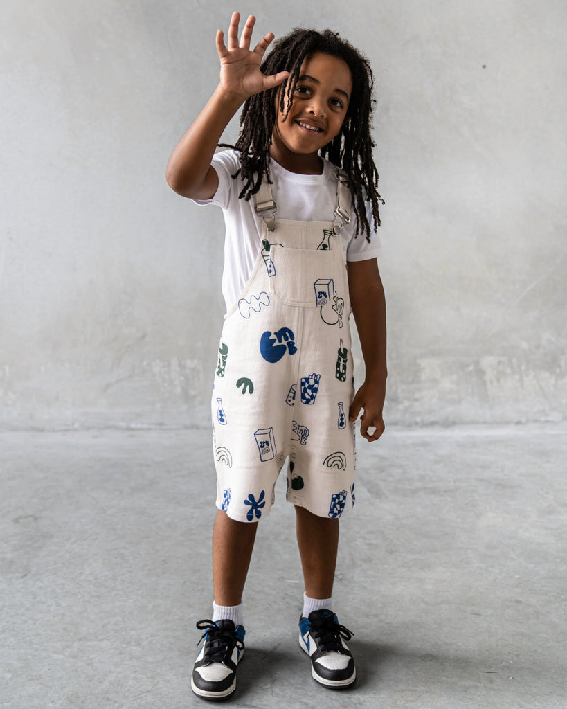 Our Abstract Snacks Shortalls have all the classic style of denim shortalls with an unexpected twist. Featuring an abstract print that pays homage to our original collection of asian snack-inspired clothing, these shortalls will bring attitude and fun to any outfit!