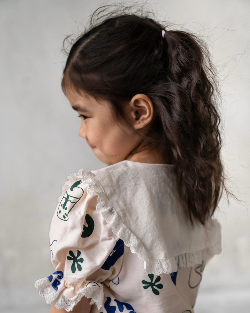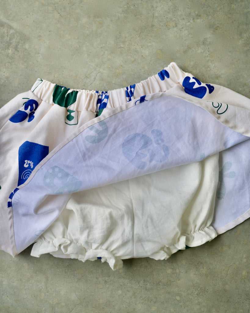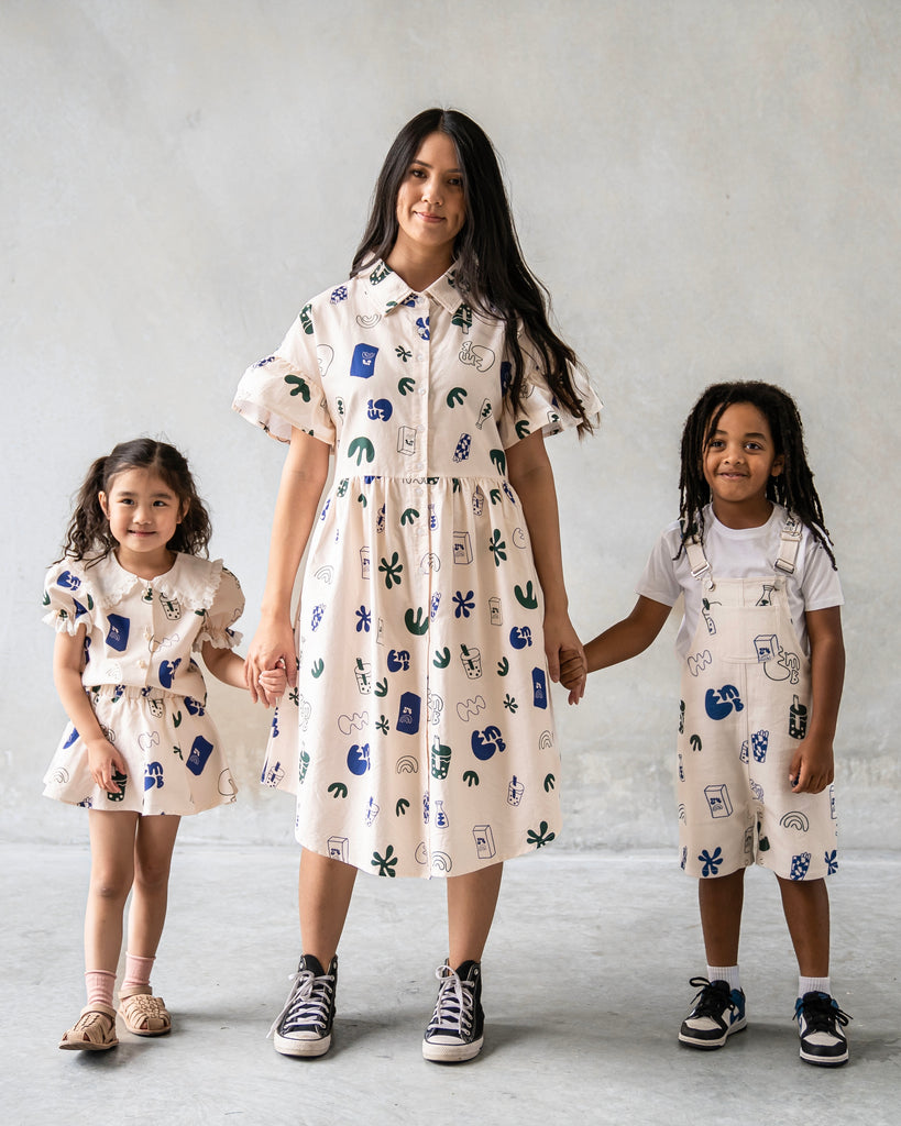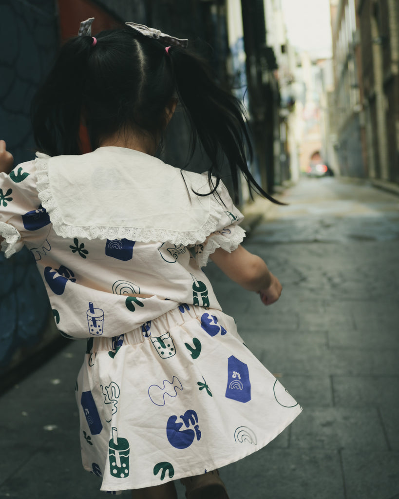 Let your little one make a statement this summer in our Abstract Snacks Frill top with Skort Set! This vintage-inspired set is made of 100% cotton and features a Peter Pan frill collar, pearl buttons, and an abstract pattern which pays homage to our original collection of asian snack-inspired clothing.